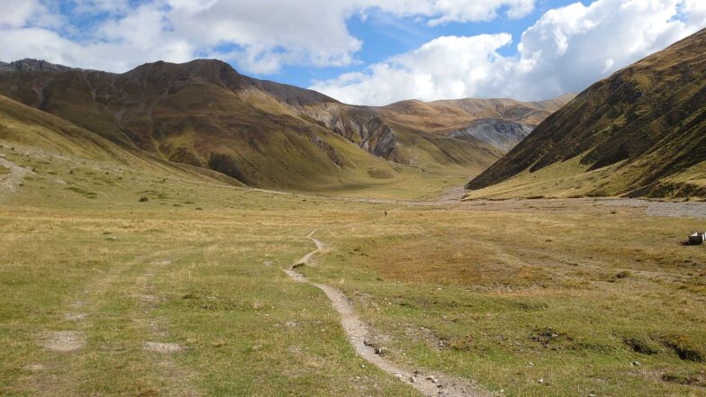 Für den weiteren Anstieg auf den in ca. 2.600 Meter Höhe gelegenen Scalettapass wurde es nun technisch aber anspruchsvoller – konnte man den mit bis zu 30% Steigung steilen Weg auf den ersten 2-3 Kilometern noch halbwegs gut bewältigen, so forderten die Steigung und der felsige Untergrund ihren Tribut und es war wieder mal Schieben angesagt. Man hätte mit frischen Beinen und ohne Gepäck am Rücken sicher noch etwas mehr fahren können, aber so überließen wir das dann doch einigen E-Mountainbikern, welche sich im Gegensatz zu uns optisch spielerisch auf den Berg schraubten.