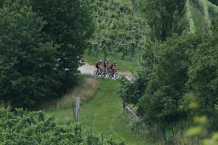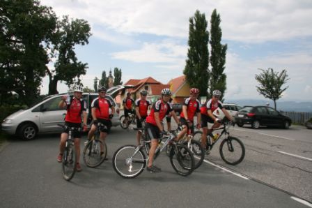 Nach einem fliegenden Start am Leibnitzer Hauptplatz ging es im 7-Mann-Pulk nach Heimschuh, wo dann Andreas Stani ST. vom Betreuer nachgebracht wurde, da er dier Ausschreibung nicht sorgfältig gelesen hatte. Bergauf nach Gauitsch trennte sich die Gruppe in zwei Lager (Reinprecht, Sametz, Zweidik, Kappel versus Stani, Totz, Janisch, Neubauer). Nach dem Gipfelspurt musste die führende Gruppe eine kurze Unterbrechung bei der Labestation von Robert Weixelberger einlegen (DANKE Robert!!!). Inzwischen kam auch der Rest und dann ging es ins Eingemachte. Bergab sprühten die Steine und aus allen Walluken kamen einige Biker. Steil bergauf begann dann das Rennfieber Einzelner: Kappel, Zweidik und Sametz setzen sich ab, Sametz führt die 3-Mann-Gruppe am Kamm entlang bis zum nächsten Anstieg von Muggenau, wo sich dann Zweidik langsam zurückzog und Sametz langsam Meter gewann. Kappel gab nicht auf blieb auf Blickkontakt mit Sametz. Zweidik kämpft, Sametz setzt sich bergab und auf dem Retourweg nach Leibnitz City (gehandicapt) ab und gewinnt vor Kappel und Zweidik, die sich noch ein Dreckduell in der Au gegeben haben und fairerweise ex äquo ins Ziel kamen. Abgekämpft tauchten Reinprecht und Janisch am Horizont des Hauptplatzes auf und als das erste Zielbier serviert wurde, trudelten auch Stani, Totz und Neubauer mit einem Lächeln im Gesicht ein. Ein stressfreies, spannendes und lustiges Rennen – schade, dass es nicht mehr gewagt haben.