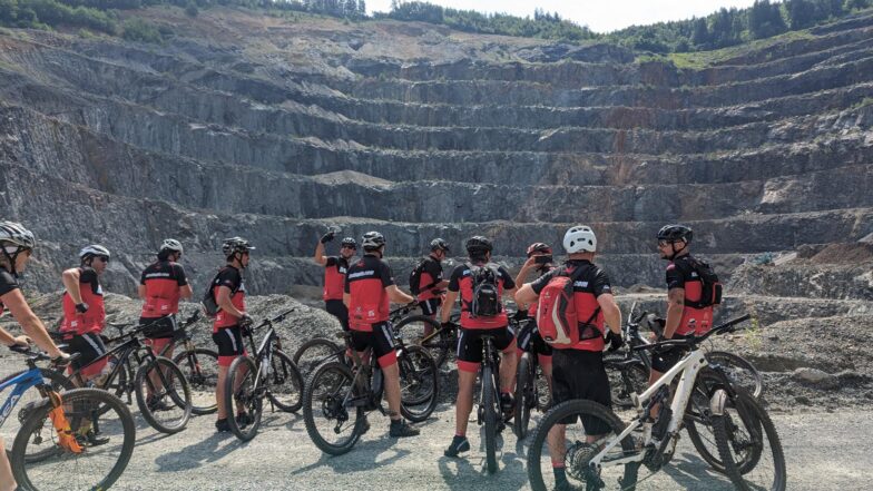 …. 1000 Hm sind geschafft und es gab, man glaubt es kaum, das erste Elektrolytgetränk 😜… nach einer kurzen Rast ging es weiter nach Pronintsch und über den Singletrail „Winisches Wegerl“ im rasanten Downhill nach Arnfels. Abschließend noch ein Anstieg über den Schlossberg bis zu Christa und Ewald‘s Schmuckstück auf den Karberg.