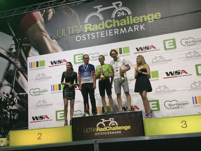 Schlußendlich bin ich 41x den Weixelberg hochgeradelt, das ergab 733,9 km (persönlicher Rekord) mit 7.345 HM und einer Durchschnittsgeschwindigkeit (brutto) von 29,82 km/h. Ohne mein geniales Betreuerteam (Ehefrau Nate, Mama und Sohn Max) wäre diese Leistung nicht möglich gewesen. Ich habe während der 24 Stunden 19l an Flüssigkeit zu mir genommen und mich ausschließlich von Gels und Flüssignahrung ernährt. Der Kalorienverbrauch lag bei 14.500. Als Belohnung gab es bei der Siegerehrung ein Händeschütteln von Herrn Strasser, eine Medaille in Bronze und eine grosse Flasche Prosecco für den 3. Platz in der Kategorie Herren Masters (= Platz 5. Herren Allgemein 24h-1).